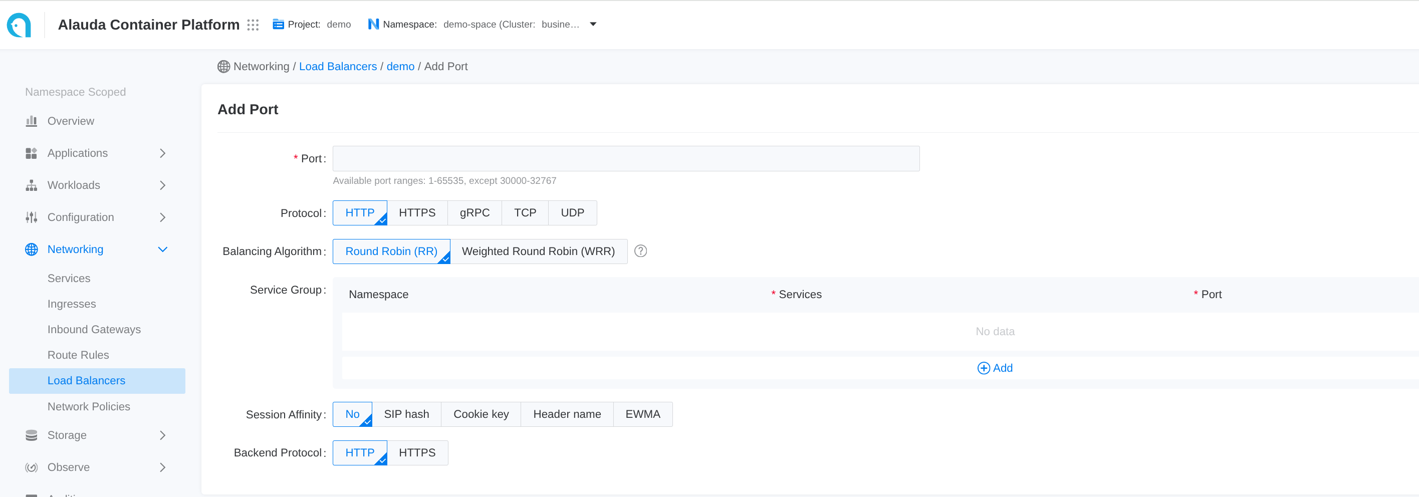 If you need to add an HTTPS listener port, you should also contact the administrator to assign a TLS certificate to the current project for encryption.